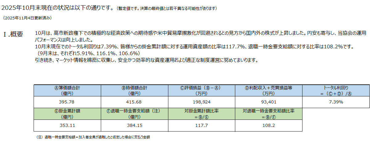 2025年10月末現在の状況は以下の通りです。(暫定値です。決算の最終値とは若干異なる可能性があります)