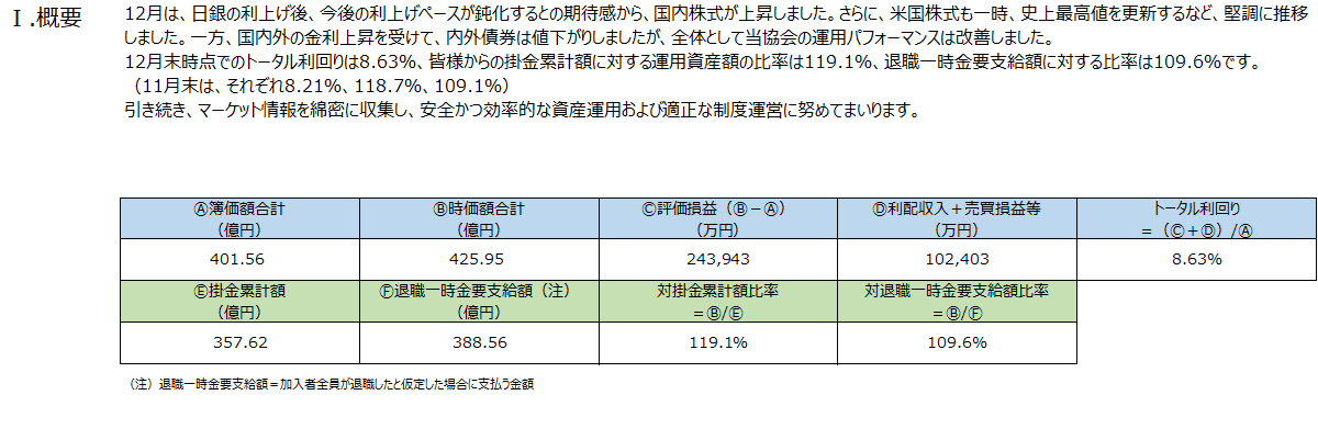 2025年12月末現在の状況は以下の通りです。(暫定値です。決算の最終値とは若干異なる可能性があります)
