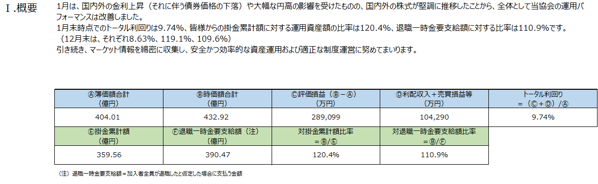 2026年1月末現在の状況は以下の通りです。(暫定値です。決算の最終値とは若干異なる可能性があります)